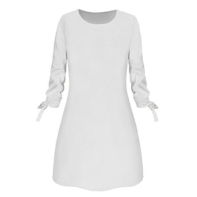 Dress Women платье Fashion Casual O-neck Solid Three Quarter Bow Elegant Straigth Dress Spring Loose Mini Dresses Free Ship Z4